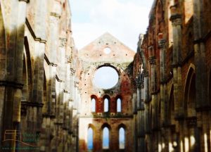 Im Oratorium ist das Schwert von San Galgano in einem Stein verankert. Der Ritter bohrte sein Schwert in den Stein, um sein Leben Gott zu weihen. Dies nach den schrecklichen Erlebnissen, die er in einem Kreuzzug machen musste. Den Rest seines Lebens verbrachte er hier als Einsiedler. Er starb 1181 und damit war die Legende von San Galgano geboren. San Galgano wurde vom Pabst für heilig erklärt und sein Schwert steckt noch immer in dem Stein, über dem die Kapelle errichtet wurde. San Galgano ist eines der meist besuchten Monumente der Toskana. Diese imposante Abtei atmet Geschichte. Sie wurde wurde zur romantischen Ruine, bestehend aus den Mauern des Kirchenschiffes. Im Sommer finden hier Events und Konzerte statt.