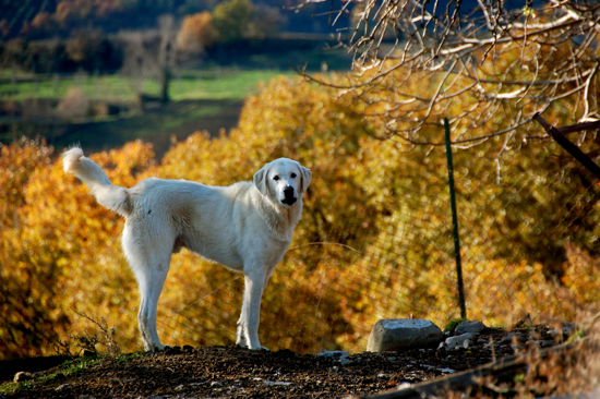 Their droppings feed the grass and the grass feeds the sheep. The dog by the way is a Maremmano which are used for herding sheep. It is a great sight to see them move the sheep around the hill with some swift moves and loud barks often without a herder.