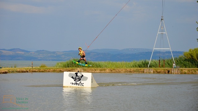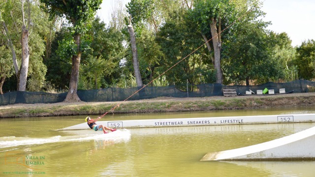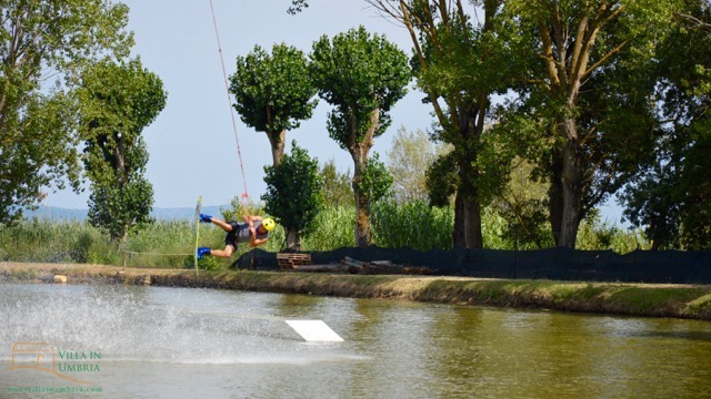 Sinds een paar jaar is er een wakeboard park in Perugia. Nu het de tijd van familie- en vriendenbezoek uit Nederland is, die ook met opgroeiende kinderen komen, leek het mij een goed idee dit eens uit te proberen. Nu ik dit schrijf zijn we één keer geweest en gaan we morgen weer. Een geslaagde expeditie dus.